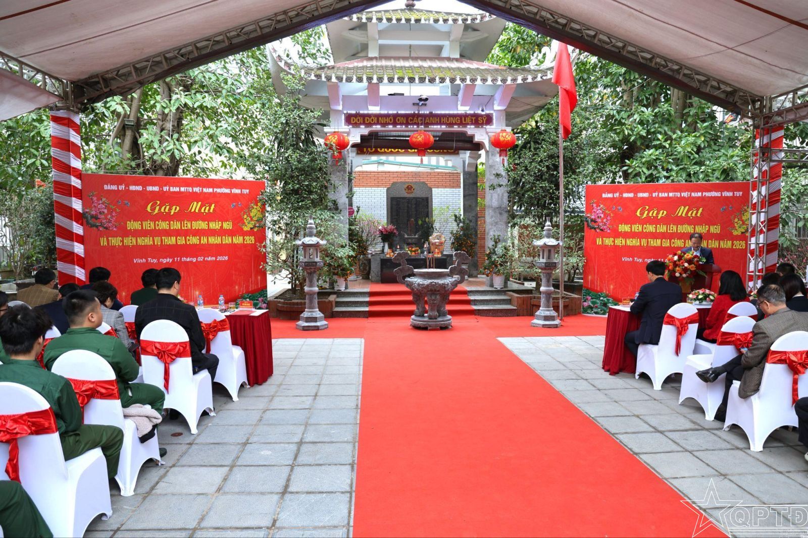 QPTĐ-Sáng 11/2, phường Vĩnh Tuy đã tổ chức gặp mặt, động viên công dân lên đường nhập ngũ và thực hiện nghĩa vụ tham gia Công an nhân dân năm 2026.