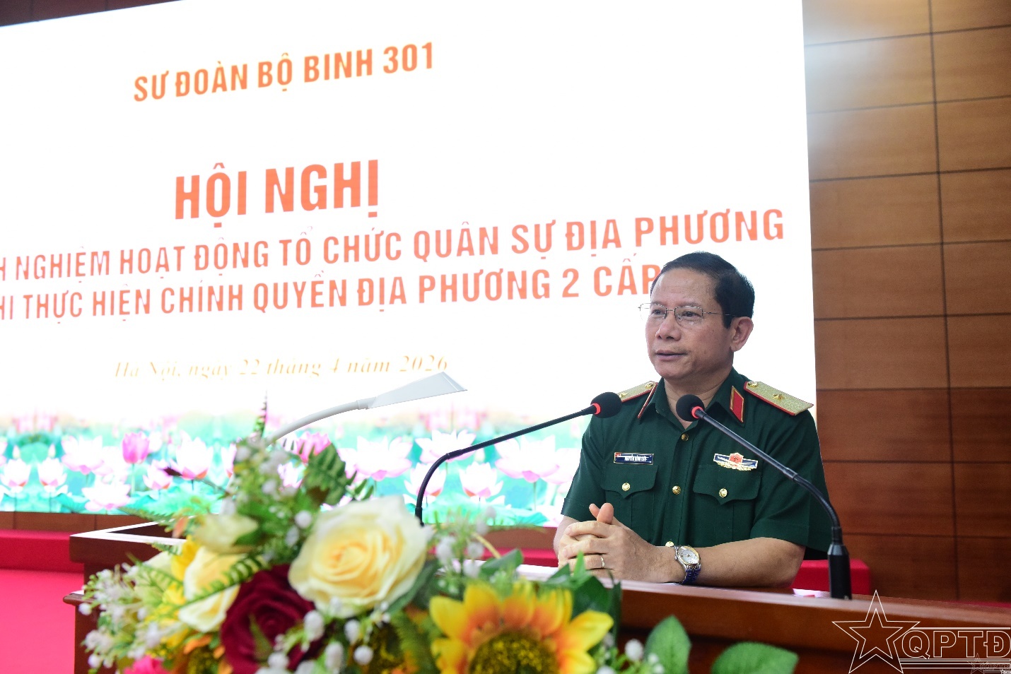 QPTĐ-Sáng 22/4, Sư đoàn Bộ binh 301 đã tổ chức Hội nghị rút kinh nghiệm hoạt động tổ chức quân sự địa phương khi thực hiện chính quyền địa phương hai cấp. Thiếu tướng Nguyễn Đình Lưu, Phó Tư lệnh Bộ Tư lệnh Thủ đô Hà Nội dự và phát biểu chỉ đạo hội nghị.