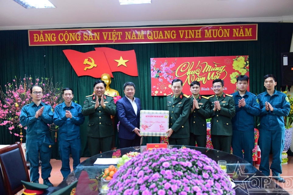 QPTĐ-Sáng 11-2, Đoàn công tác Cục Chính trị, Bộ Tư lệnh Thỉ đô Hà Nội do Đại tá Nguyễn Văn Hữu, Chủ nhiệm Chính trị Bộ Tư lệnh Thủ đô Hà Nội làm Trưởng đoàn đến thăm, chúc Tết cán bộ, chiến sĩ Ban CHQS phường Hà Đông.