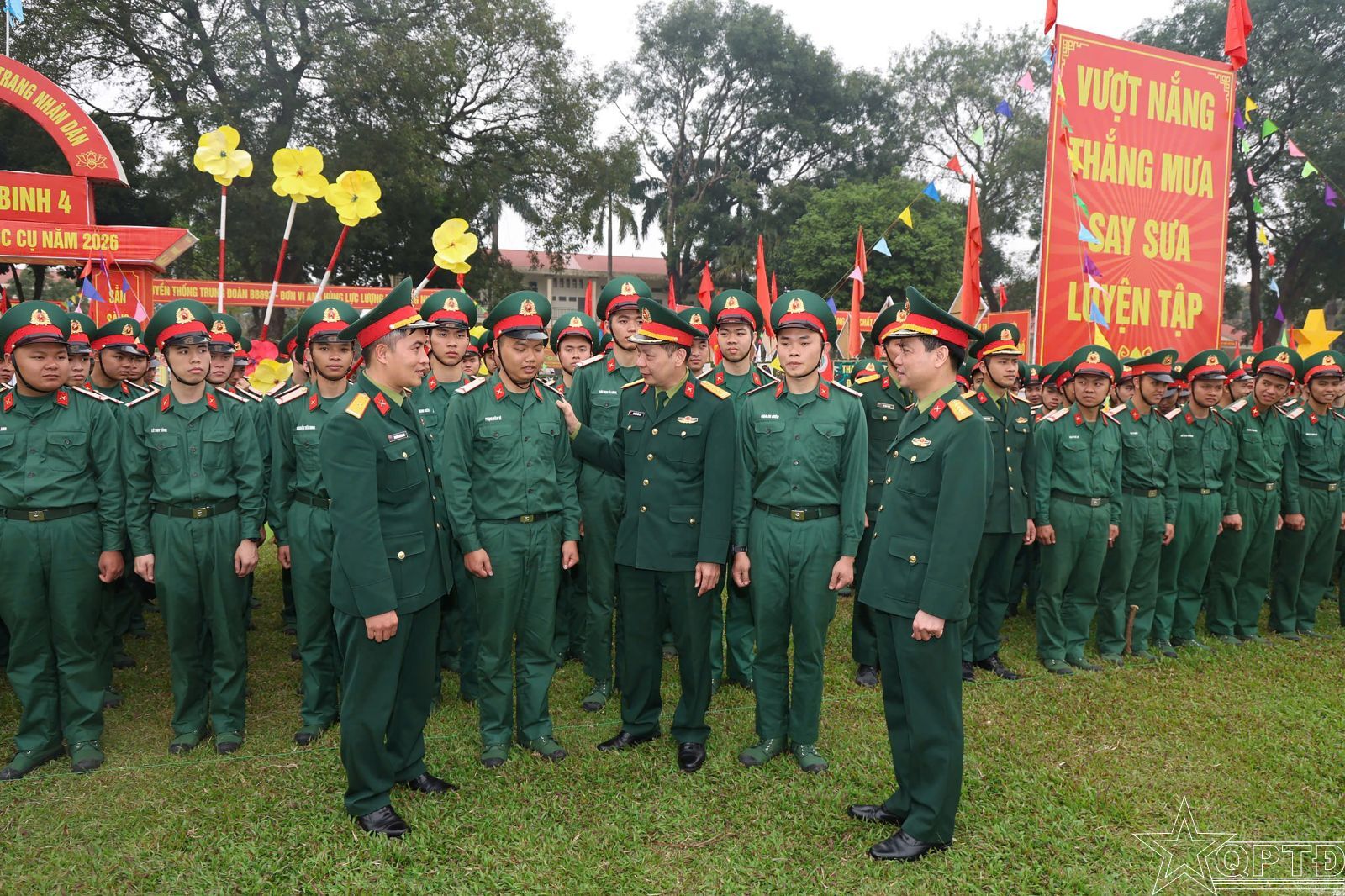 Đại tá Nguyễn Văn Hữu, Chủ nhiệm Chính trị Bộ Tư lệnh Thủ đô Hà Nội động viên chiến sĩ mới Trung đoàn 692, Sư đoàn Bộ binh 301.