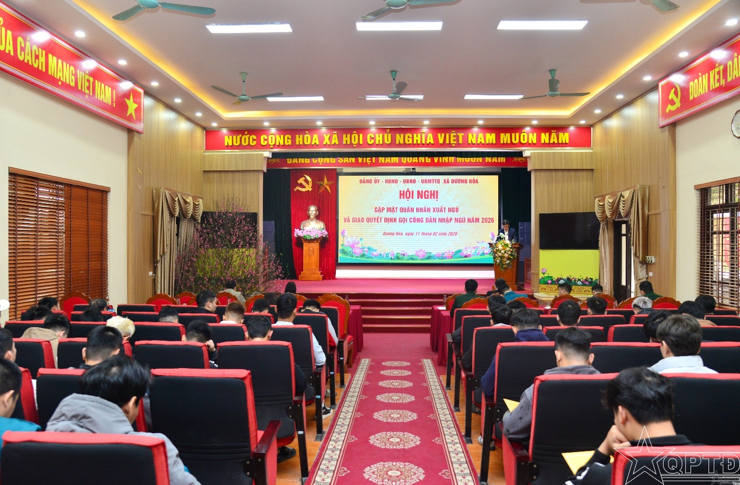 QPTĐ-Ngày 11-2, thực hiện kế hoạch công tác quốc phòng, quân sự địa phương năm 2026, xã Dương Hòa tổ chức hội nghị gặp mặt quân nhân xuất ngũ và trao Quyết định gọi công dân nhập ngũ năm 2026.