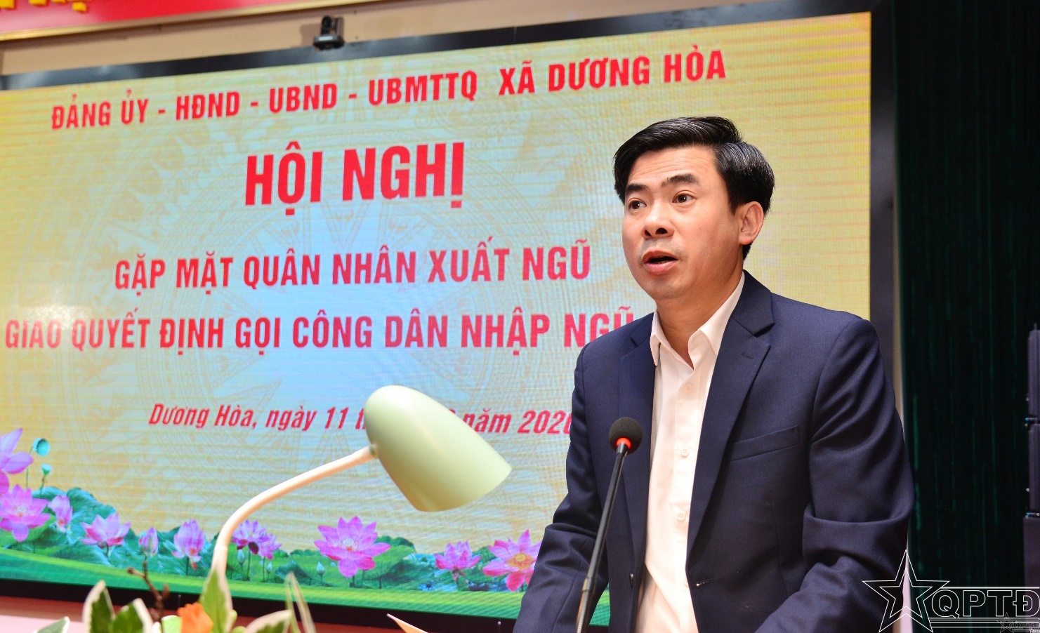Phát biểu tại hội nghị, đồng chí Lê Đức Phóng, Phó Bí thư Đảng uỷ, Chủ tịch UBND xã Dương Hoà biểu dương, ghi nhận và đánh giá cao những nỗ lực rèn luyện, phấn đấu trong thời gian công tác của các quân nhân tại các đơn vị Quân đội nhân dân Việt Nam. Những kết quả đạt được không chỉ thể hiện tinh thần trách nhiệm, ý chí quyết tâm của tuổi trẻ xã Dương Hòa mà còn góp phần tô thắm truyền thống cách mạng của quê hương. Đồng thời động viên các thanh niên trúng tuyển nghĩa vụ quân sự năm 2026 tiếp tục phát huy truyền thống quê hương, chấp hành nghiêm lệnh gọi nhập ngũ, tích cực học tập, rèn luyện, hoàn thành xuất sắc nhiệm vụ được giao.