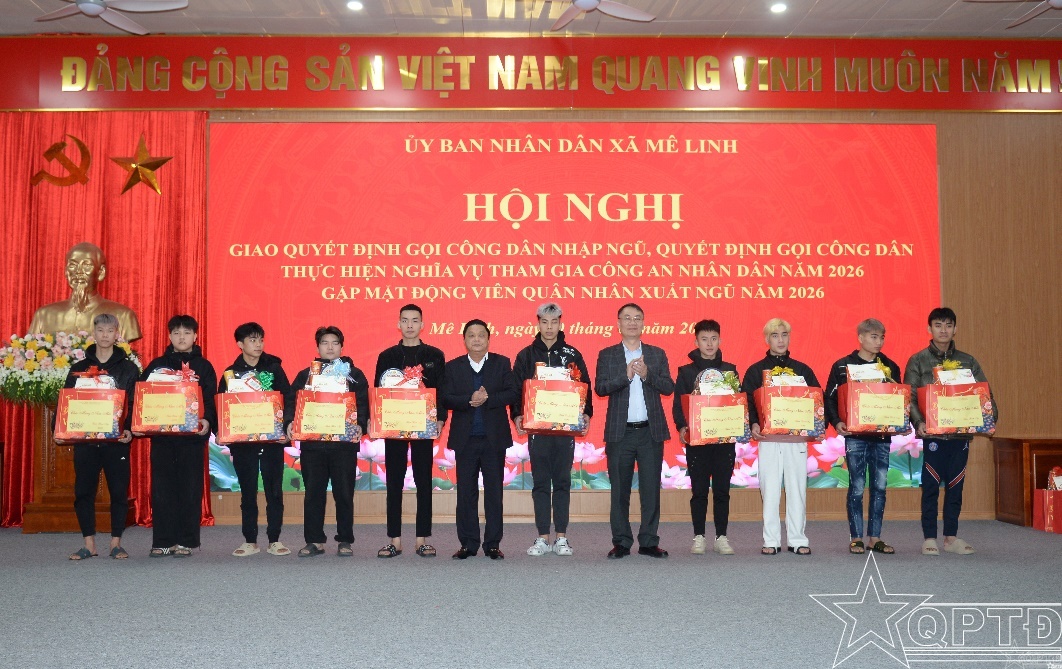 Lãnh đạo xã Mê Linh tặng quà động viên cho thanh niên chuẩn bị nhập ngũ và quân nhân hoàn thành nghĩa vụ quân sự tại ngũ trở về địa phương năm 2026.