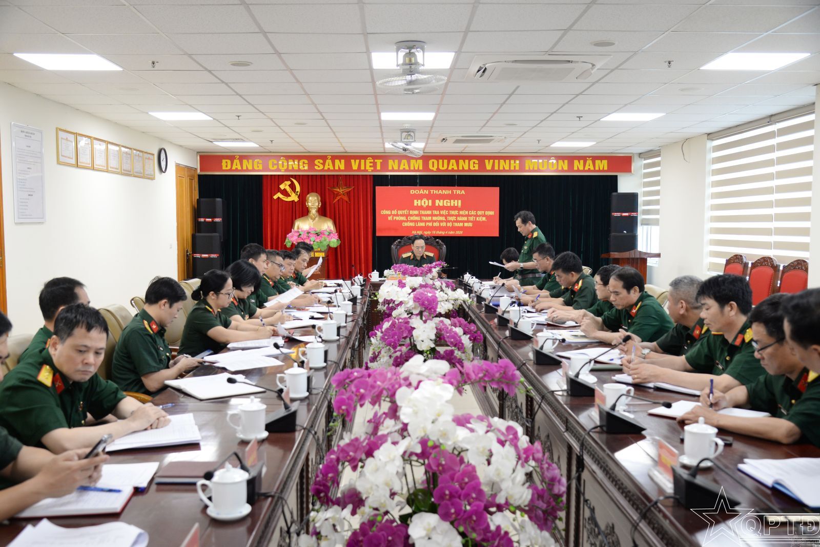 Theo quyết định công bố tại hội nghị, nội dung thanh tra tập trung vào công tác lãnh đạo, chỉ đạo, tổ chức quán triệt, tuyên truyền các chủ trương của Đảng, chính sách, pháp luật của Nhà nước; các chỉ thị, quy định của Quân ủy Trung ương, Bộ Quốc phòng, Thành ủy, UBND thành phố Hà Nội và Bộ Tư lệnh Thủ đô Hà Nội về PCTN, THTK, CLP. Đồng thời, kiểm tra việc triển khai thực hiện các văn bản hướng dẫn, chỉ đạo của cấp trên trong toàn Bộ Tham mưu.