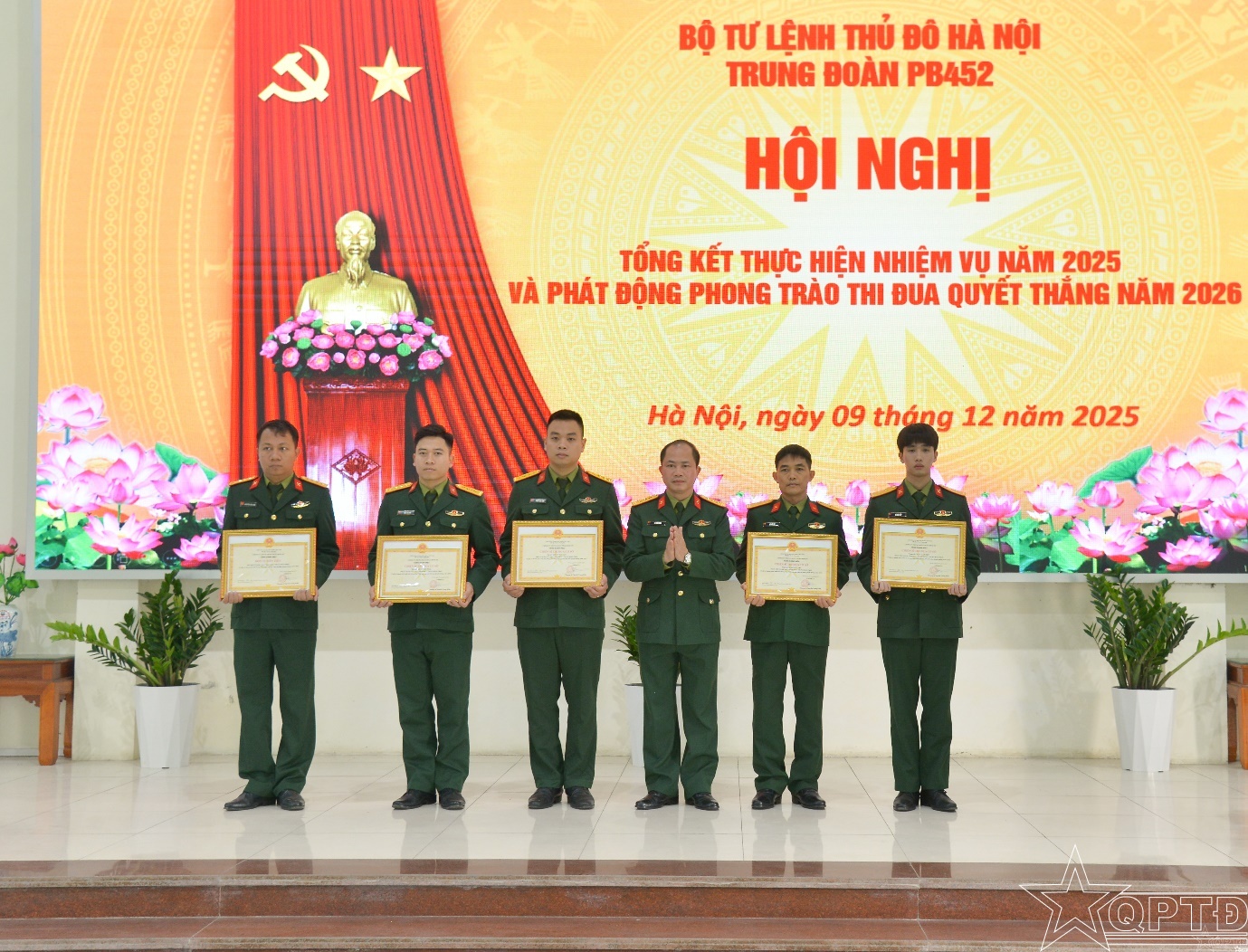 Nhân dịp này, Trung đoàn đã khen thưởng cho 1 tập thể, 21 cá nhân hoàn thành tốt nhiệm vụ và xuất sắc nhiệm vụ trong năm 2025.