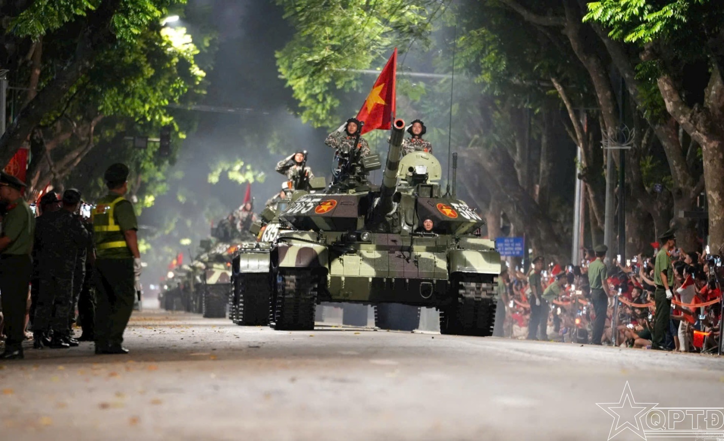Lực lượng Tăng thiết giáp diễu binh trên đường phố Hà Nội.