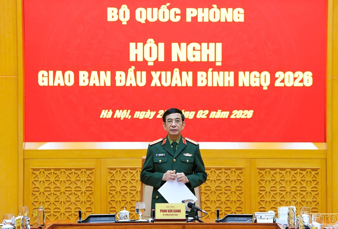 QPTĐ-Sáng 24-2, Bộ Quốc phòng tổ chức Hội nghị giao ban đầu Xuân Bính Ngọ 2026 bằng hình thức trực tuyến tới các điểm cầu trong toàn quân. Đại tướng Phan Văn Giang, Ủy viên Bộ Chính trị, Phó Bí thư Quân ủy Trung ương, Bộ trưởng Bộ Quốc phòng chủ trì hội nghị.