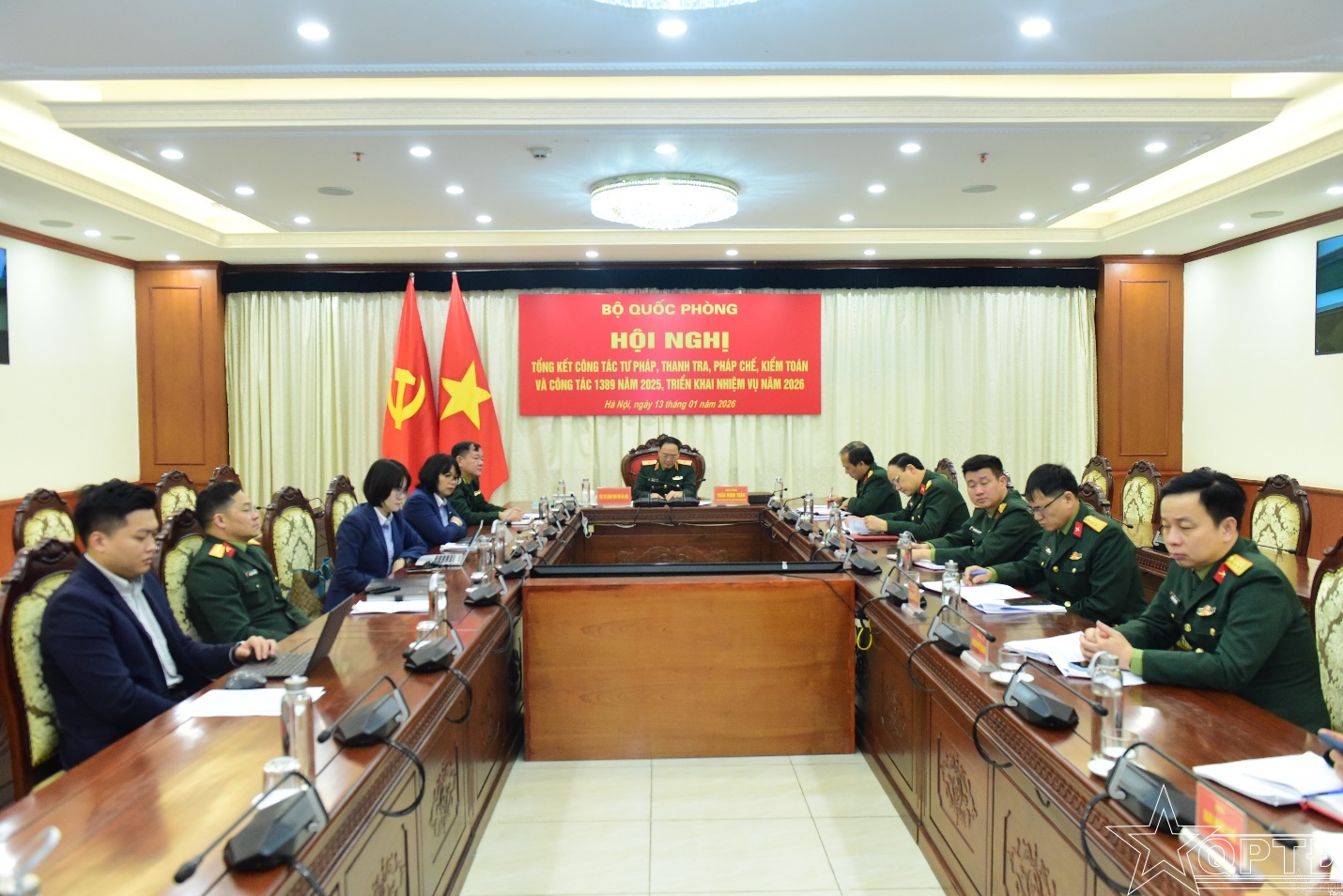 QPTĐ-Sáng 13/1, Bộ Quốc phòng tổ chức Hội nghị tổng kết công tác tư pháp, thanh tra, pháp chế, kiểm toán và công tác 1389 năm 2025; triển khai nhiệm vụ năm 2026 theo hình thức trực tiếp kết hợp trực tuyến tại 66 điểm cầu trong toàn quân. Thượng tướng Võ Minh Lương, Ủy viên Trung ương Đảng, Ủy viên Thường vụ Quân ủy Trung ương, Thứ trưởng Bộ Quốc phòng, Trưởng Ban chỉ đạo 1389 Bộ Quốc phòng chủ trì hội nghị.