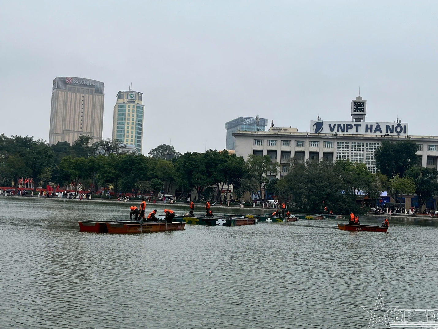 Đơn vị tổ chức liên kết bè xuồng tại Hồ Hoàn Kiếm.
