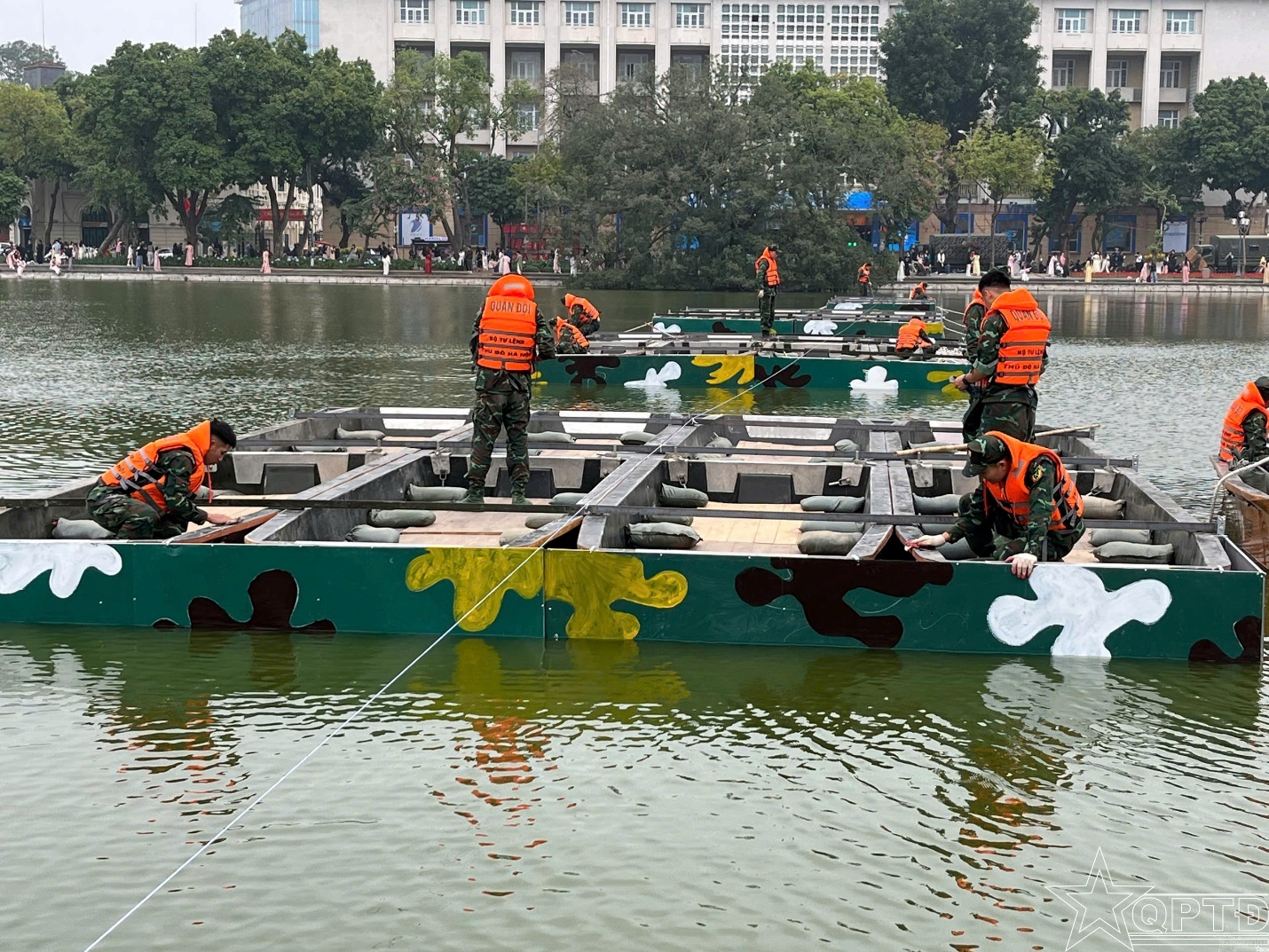 Tiểu đoàn liên kết bè trên Hồ Tây.