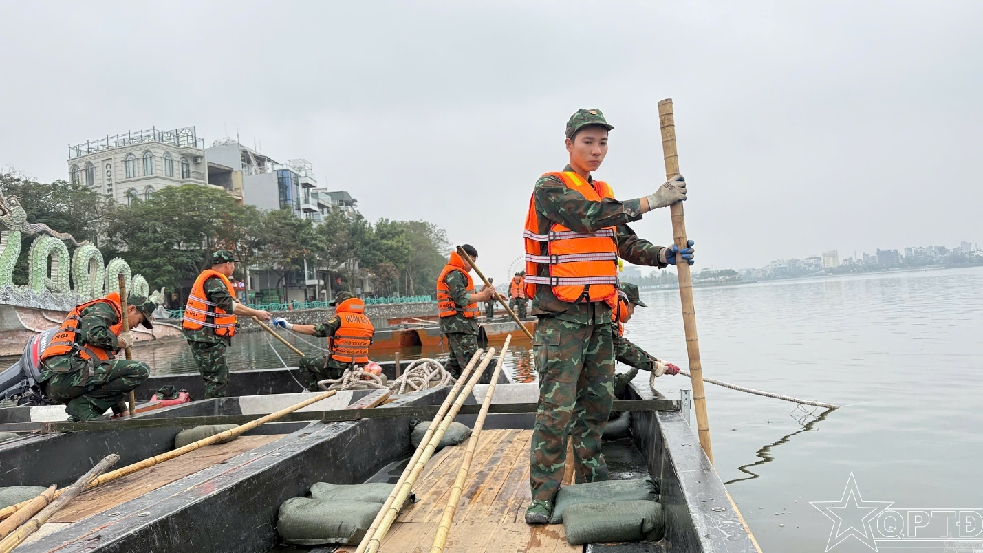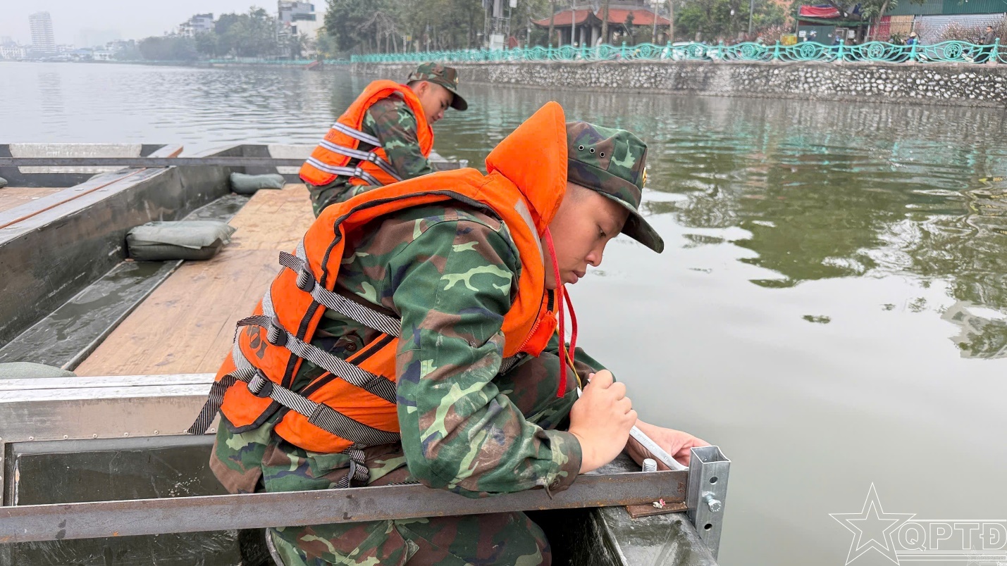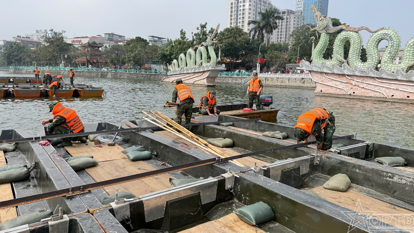 Theo đó, Tiểu đoàn đã huy động 60 cán bộ, chiến sĩ; phối hợp chặt chẽ với Ban Chỉ huy PTKV3-Hồng Hà tổ chức liên kết các bè, xuồng tạo mặt bằng trên Hồ Hoàn Kiềm và Hồ Tây để bố trí pháo hoa hoả thuật và kiểm tra dò mìn, xử lý bom mìn, vật liệu nổ bảo đảm an toàn các trận địa pháo hoa Tết Bính Ngọ tại các địa điểm. Trong đó, đơn vị đã đảm bảo 135 thuyền VSN 1500, 7 bộ nối thuyền, 12 chạc chèo và nhiều trang thiết bị cần thiết phục vụ liên kết bè xuồng.