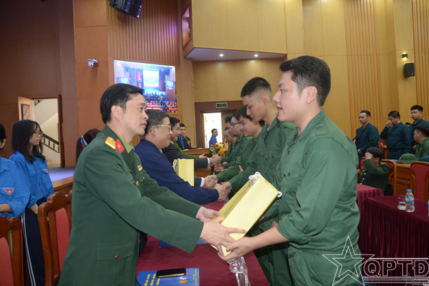Tặng quà cho các công dân chuẩn bị lên đường nhập ngũ.