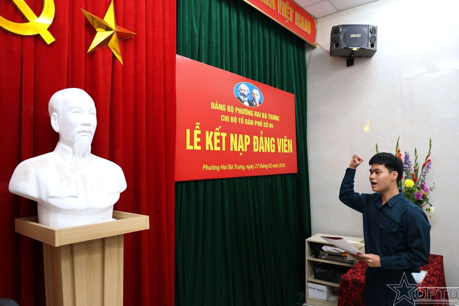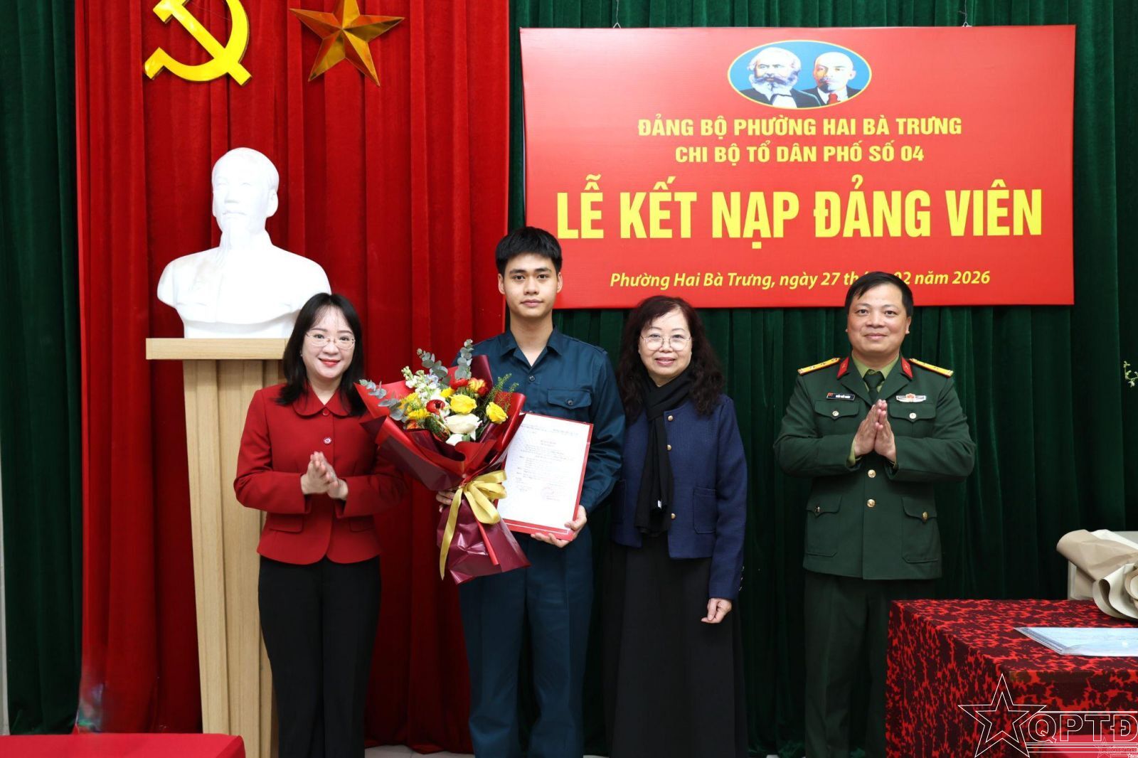 QPTĐ-Sáng 27/2, Chi bộ Tổ dân phố số 4, Đảng bộ phường Hai Bà Trưng đã tổ chức Lễ kết nạp Đảng cho quần chúng ưu tú Phạm Tuấn Nhật, công dân chuẩn bị nhập ngũ năm 2026. Đến dự và chỉ đạo buổi lễ có đồng chí Nguyễn Xuân Diệp, Phó Bí thư Thường trực Đảng ủy phường Hai Bà Trưng; cùng đông đảo đảng viên trong Chi bộ Tổ dân phố số 4 và gia đình đảng viên mới.
