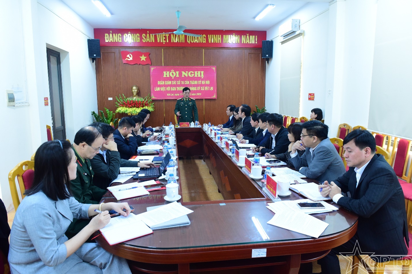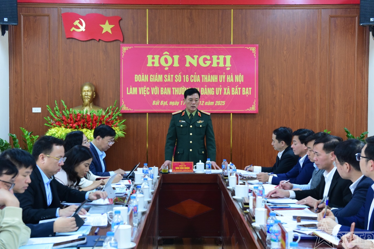 QPTĐ-Sáng ngày 11-12, Đoàn Giám sát số 16 của Thành ủy Hà Nội do Thiếu tướng Đào Văn Nhận, Ủy viên Ban Thường vụ Thành ủy, Phó Bí thư Đảng ủy, Tư lệnh Bộ Tư lệnh Thủ đô Hà Nội làm Trưởng đoàn, đã tổ chức giám sát việc lãnh đạo, chỉ đạo thực hiện các nhiệm vụ trọng tâm, cấp bách năm 2025 tại xã Vật Lại và xã Bất Bạt.