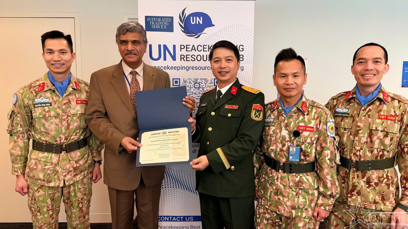 QPTĐ-Liên hợp quốc vừa chính thức công nhận Khóa huấn luyện Sĩ quan Tham mưu Liên hợp quốc (UNSOC) do Cục Gìn giữ hòa bình Việt Nam tổ chức đạt chuẩn huấn luyện tiền triển khai của Liên hợp quốc. Đây là lần đầu tiên Việt Nam có một khóa huấn luyện trong lĩnh vực gìn giữ hòa bình được Liên hợp quốc công nhận đạt chuẩn, đánh dấu bước phát triển quan trọng về năng lực huấn luyện và hội nhập quốc tế của lực lượng gìn giữ hòa bình Việt Nam.